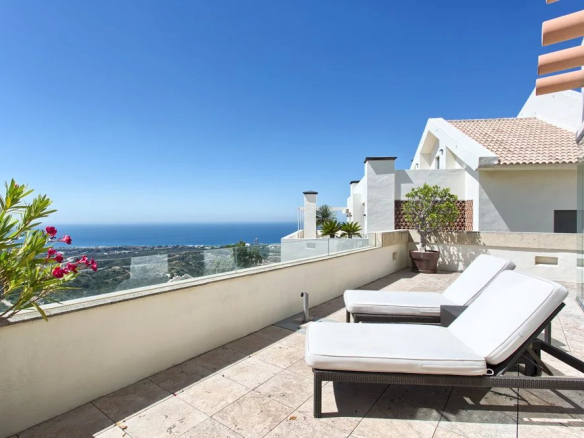 A contemporary, high-quality, quiet, and private duplex penthouse with panoramic views of the coast and the Mediterranean. South-east facing.