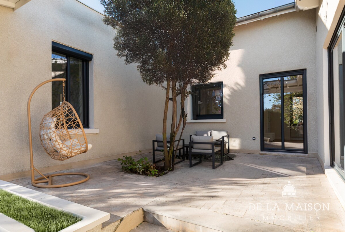 In one of Écully's most sought-after residential areas, this elegant, fully renovated family home offers 208 sq m of living space on a landscaped plot of approximately 979 sq m, providing a rare living environment just minutes from Lyon.