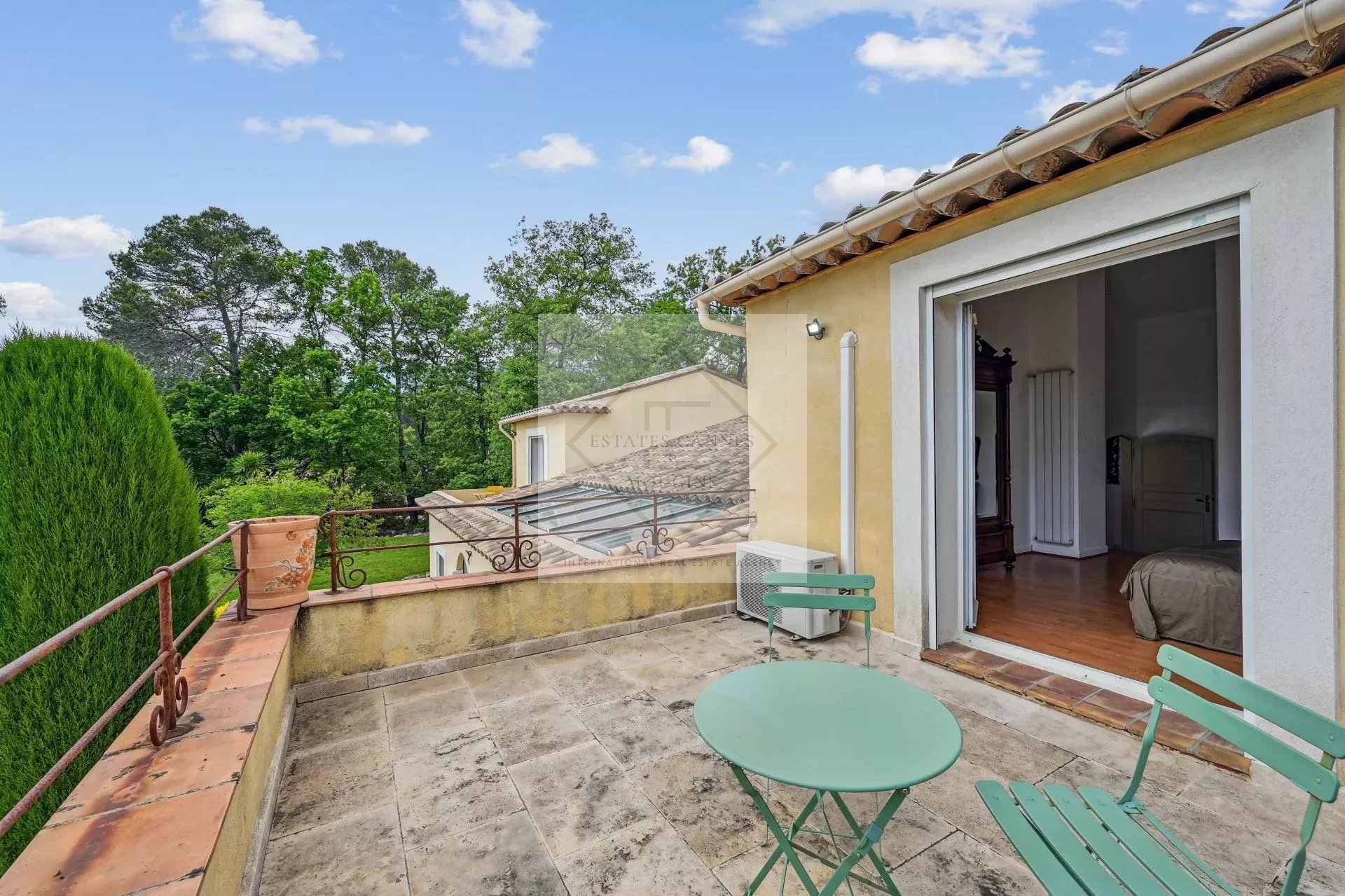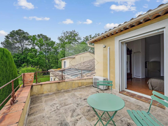 Immerse yourself in a summery atmosphere with a sparkling private pool, surrounded by a sunny terrace, perfect for relaxing or hosting convivial evenings. The beautiful terraces and extended balconies of the bedrooms offer unobstructed and soothing views of the surrounding nature.