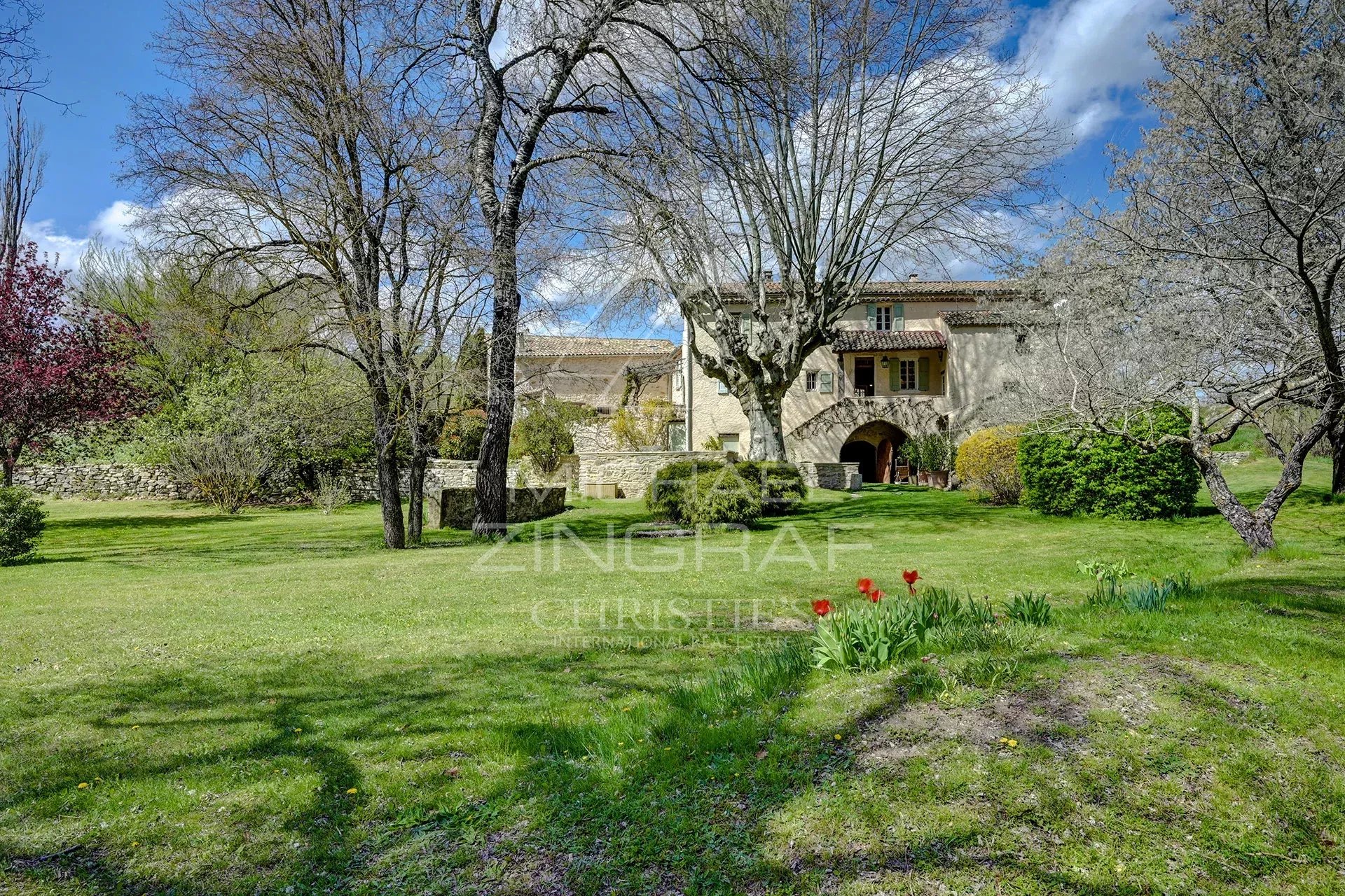 This authentic 17th-century mill, masterfully renovated, is nestled in a verdant setting. Located in the Luberon Regional Natural Park and facing the majestic Lure mountain, this unique property stands at the confluence of two peaceful streams. The lush grounds, adorned with trees and flowers, are surrounded by verdant forests, fields, and meadows stretching as far as the eye can see, creating an atmosphere of tranquility and harmony. To complete this enchanting picture, a heated swimming pool and a plunge pool invite relaxation and tranquility.