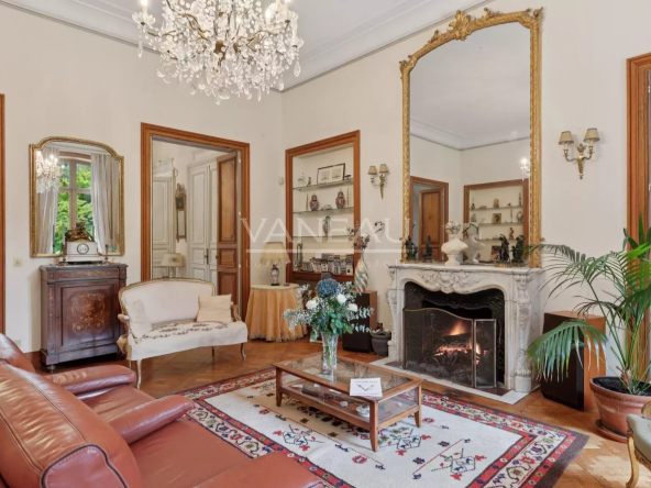 On three levels, and a full basement, this characterful property seduces from the moment you enter with its generous volumes and preserved period features: high ceilings (up to 4.30 m), oak parquet flooring, marble fireplaces and original moldings.