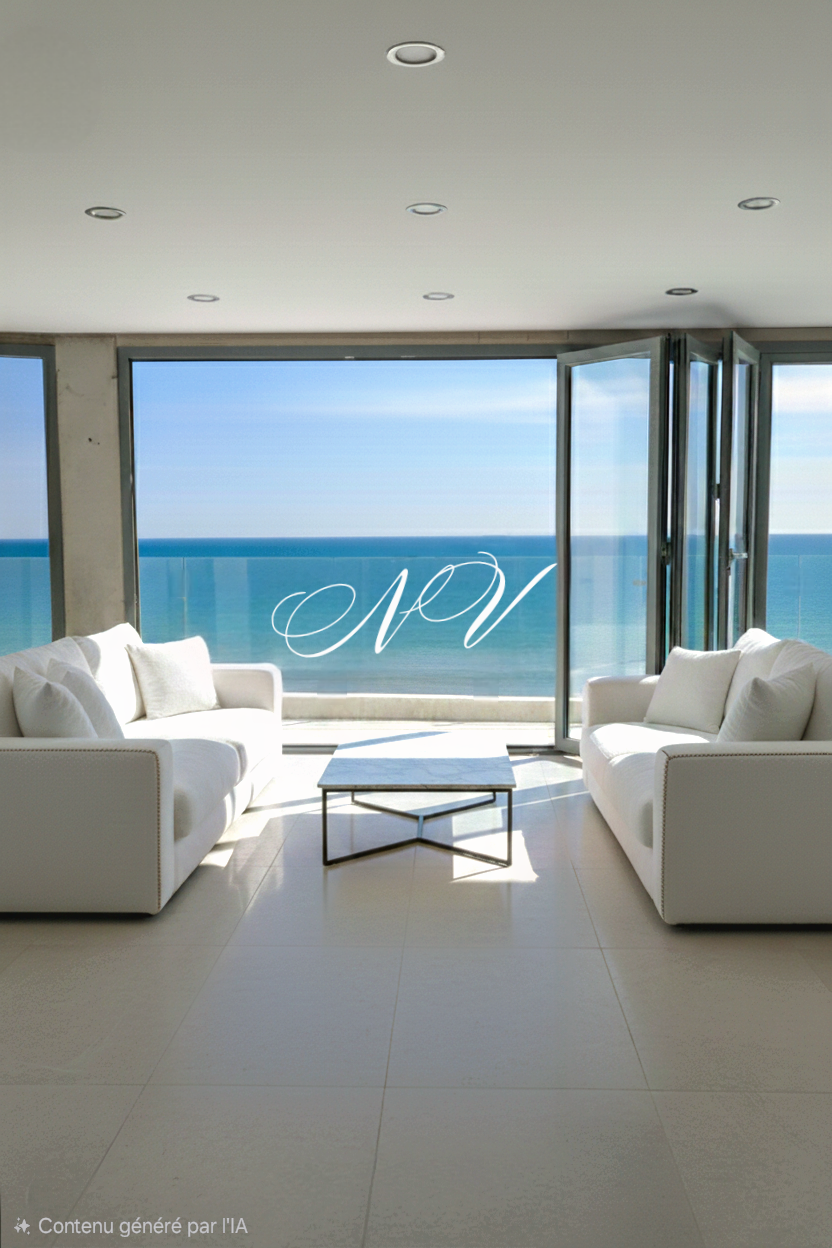 – From the moment you enter, you are immersed in the 60 m² living area, entirely open to the sea. Large bay windows, nearly three meters high, open completely, erasing any sense of boundary.
