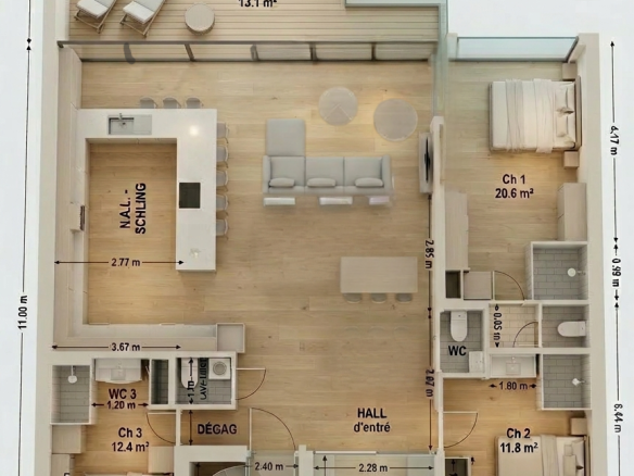 The apartment, currently being finished, offers a rare level of quality. It features Daikin ducted air conditioning with Air Zone control, enhanced soundproofing (ceilings, walls, floors) guaranteeing absolute silence, and meticulously selected, high-end materials. Every detail, from the choice of finishes to the design of the fixtures, combines elegance, performance, and comfort. The interior finishes—tiles, kitchen, and decorative elements—remain customizable to your preferences.