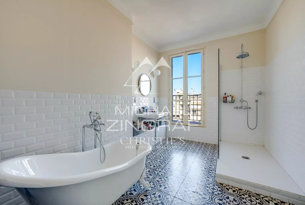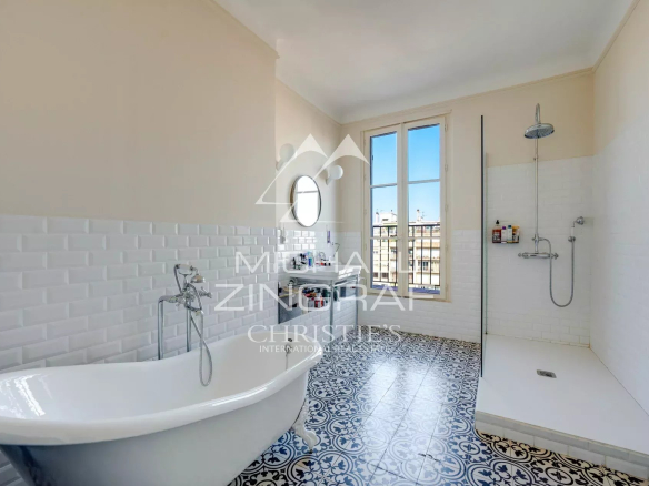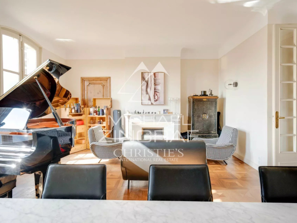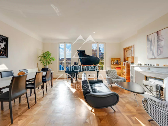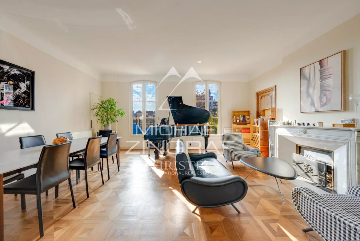 Ideally located on the top floor of an intimate and well-maintained condominium, this exceptional 218 m² Carrez Law apartment impresses with its timeless elegance, generous volumes and remarkable brightness.