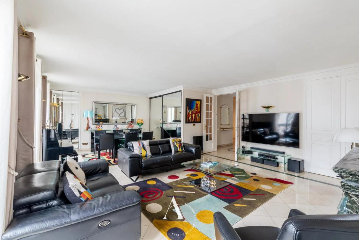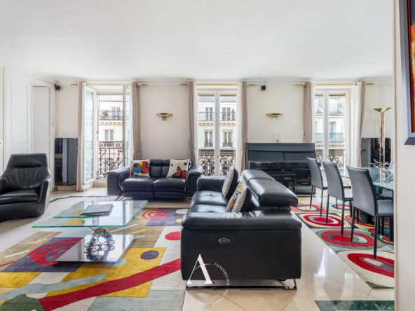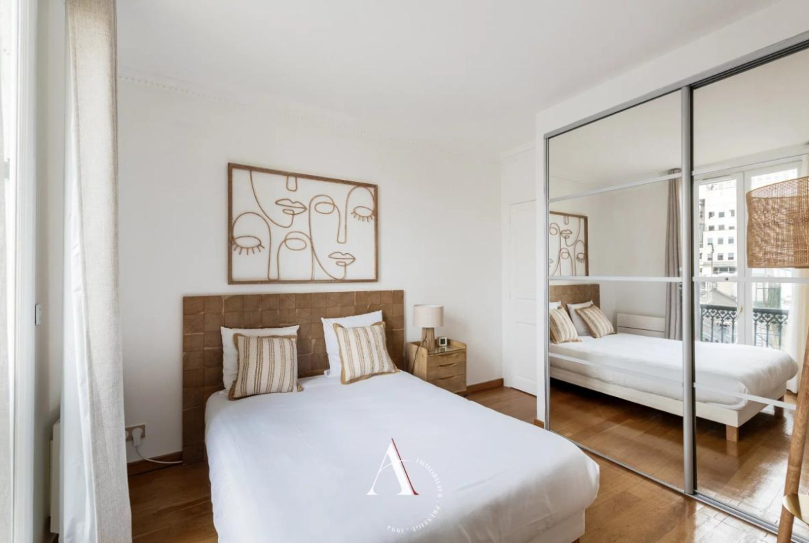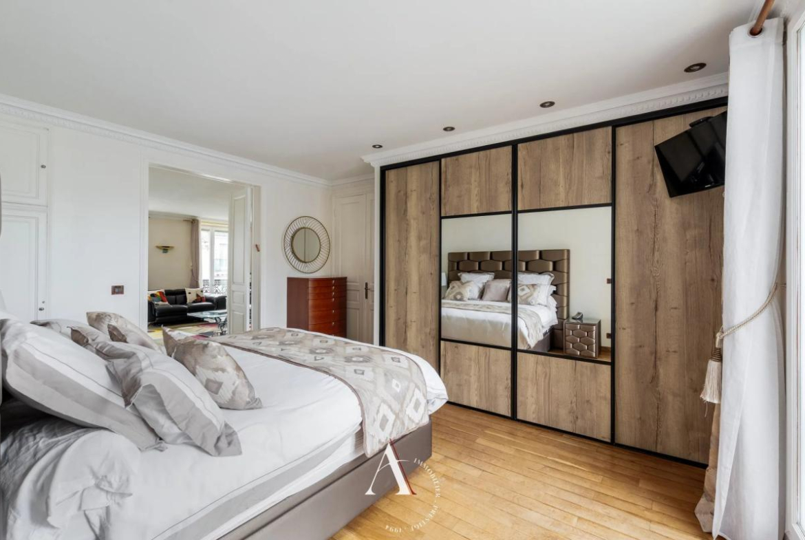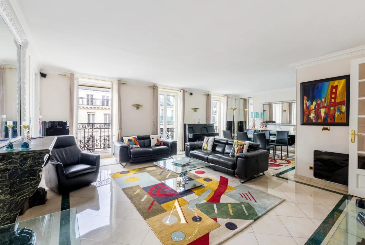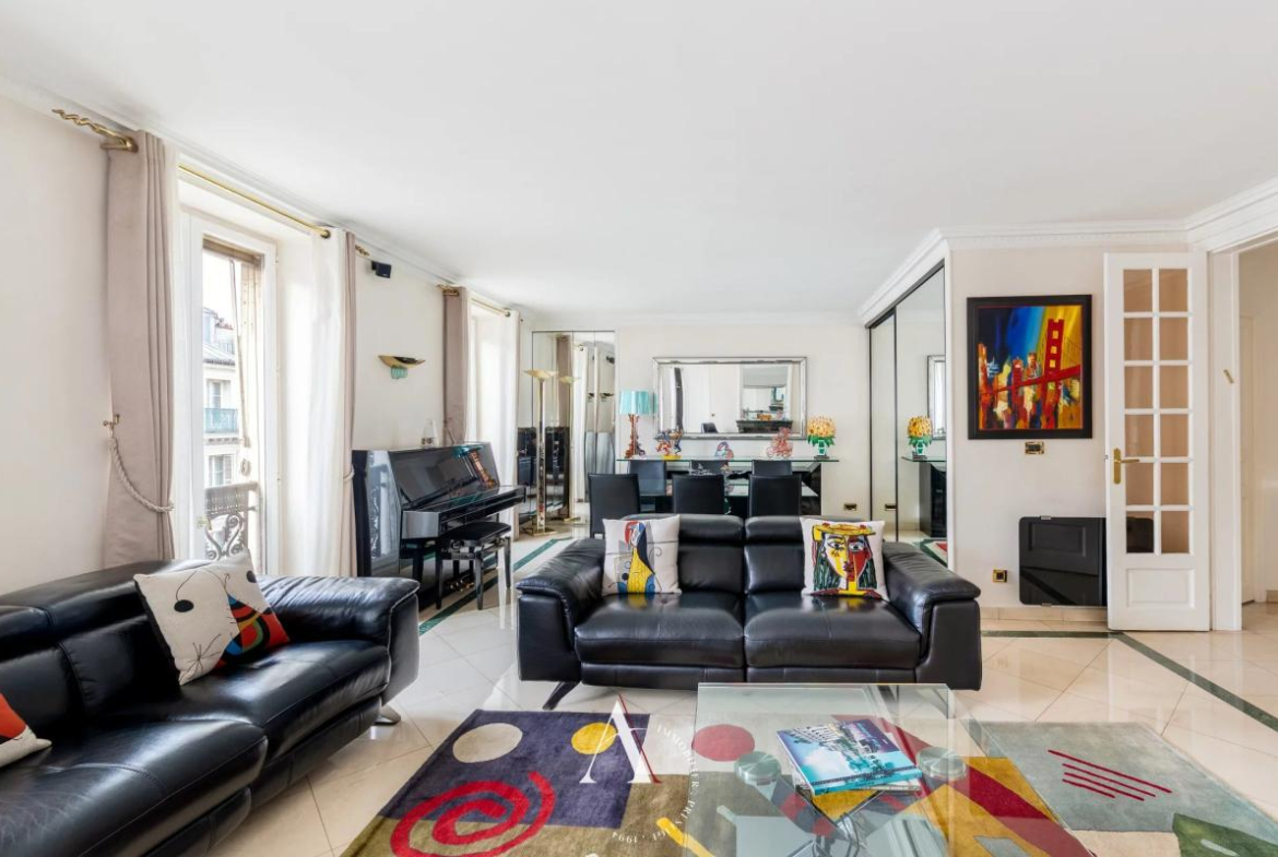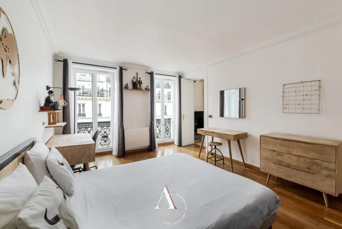 Discover this magnificent 115 sq m apartment located in the heart of Paris's 9th arrondissement. With its five spacious rooms, this apartment is ideal for families seeking an elegant and comfortable living environment. The living room, adorned with a fireplace and large double-glazed PVC windows, offers a warm and bright atmosphere.