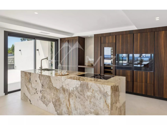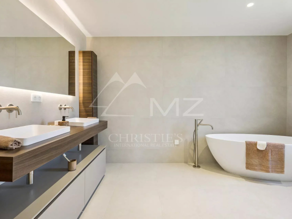 The living spaces flow seamlessly onto expansive terraces, ideal for entertaining or simply enjoying the mild climate. The swimming pool blends perfectly into this ensemble, offering a privileged setting with stunning views.