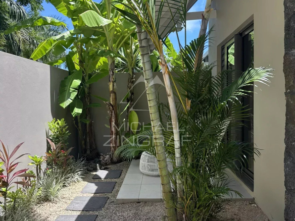 This semi-detached villa captivates with its harmonious architecture and refined tropical atmosphere. The master suite, located upstairs, offers excellent privacy and opens onto a private balcony, ideal for enjoying the mild climate and views of the lush surroundings.