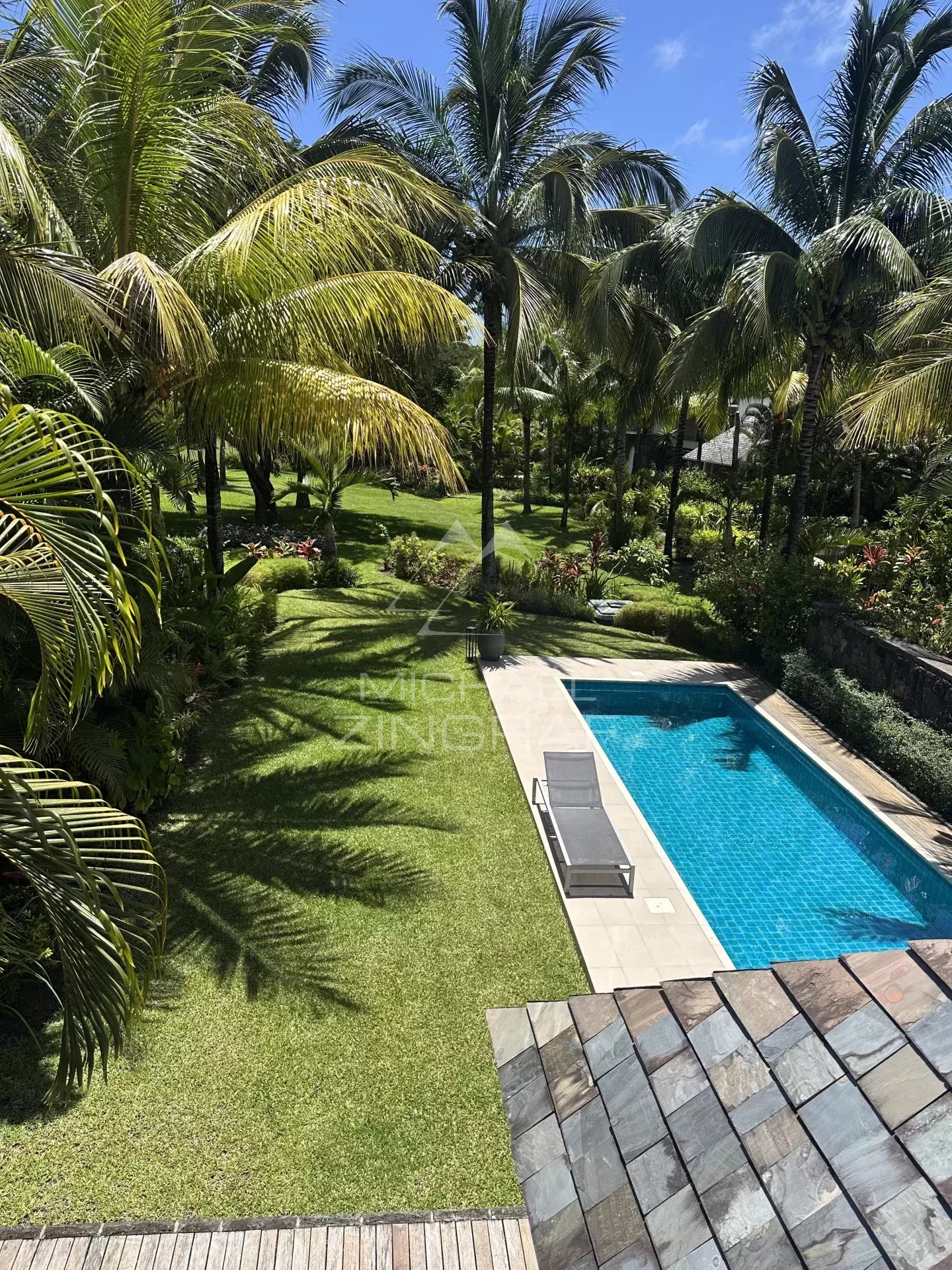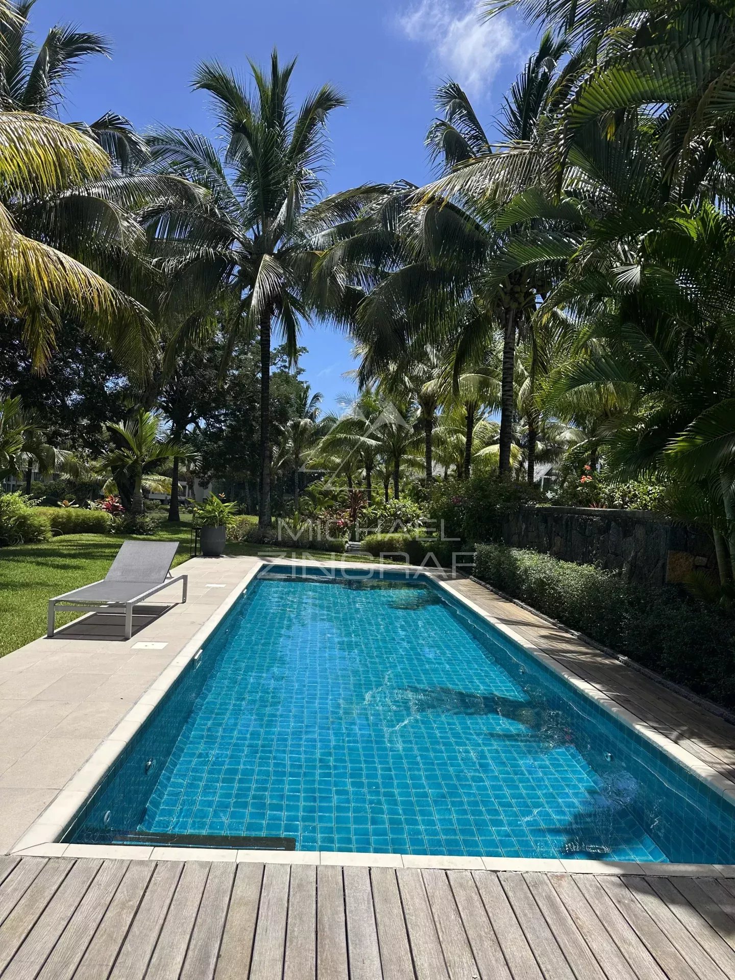Outside, a spacious covered terrace, fully furnished with outdoor seating and a dining table, invites you to entertain family and friends in an idyllic setting. From the terrace, indulge in a refreshing dip in the private pool, a true haven of tranquility, surrounded by a meticulously maintained tropical garden.