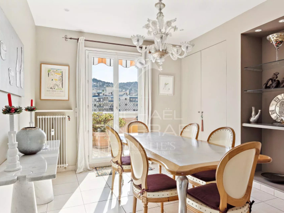 With over 174 m² of living space and more than 145 m² of private terraces, this unique penthouse is located on the top floor of one of the port's most prestigious residences. In close proximity to beaches, amenities, and public transport, this light-filled, dual-aspect apartment offers generous living spaces and breathtaking views of the port and the Bay of Angels. You will also enjoy magnificent sunsets from your terrace.
