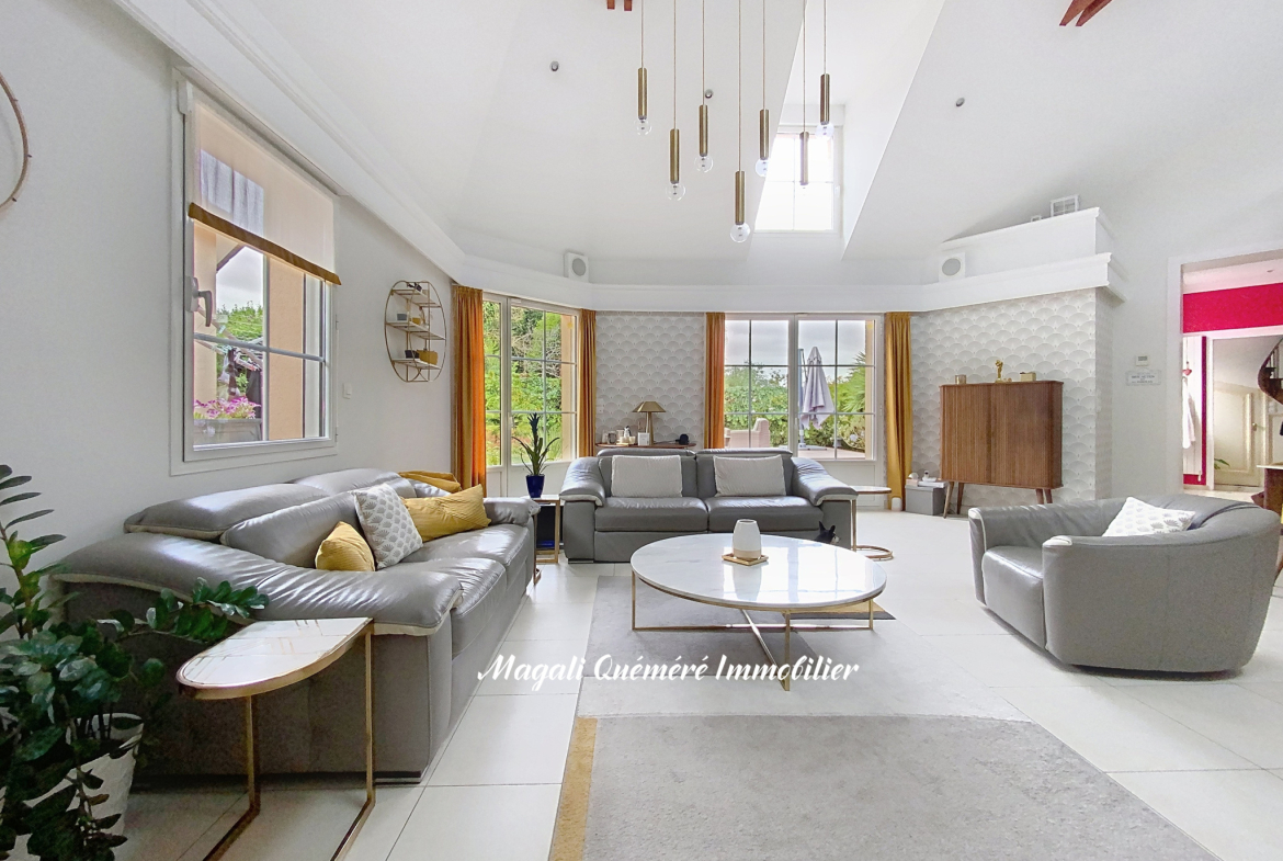 The entire property, totaling 415 sq m, is in immaculate condition inside and out and requires no work before moving in. Features include a recently installed gas boiler with underfloor heating and radiators, RJ45 sockets, central vacuum system, double glazing, and a recently replaced natural slate roof.