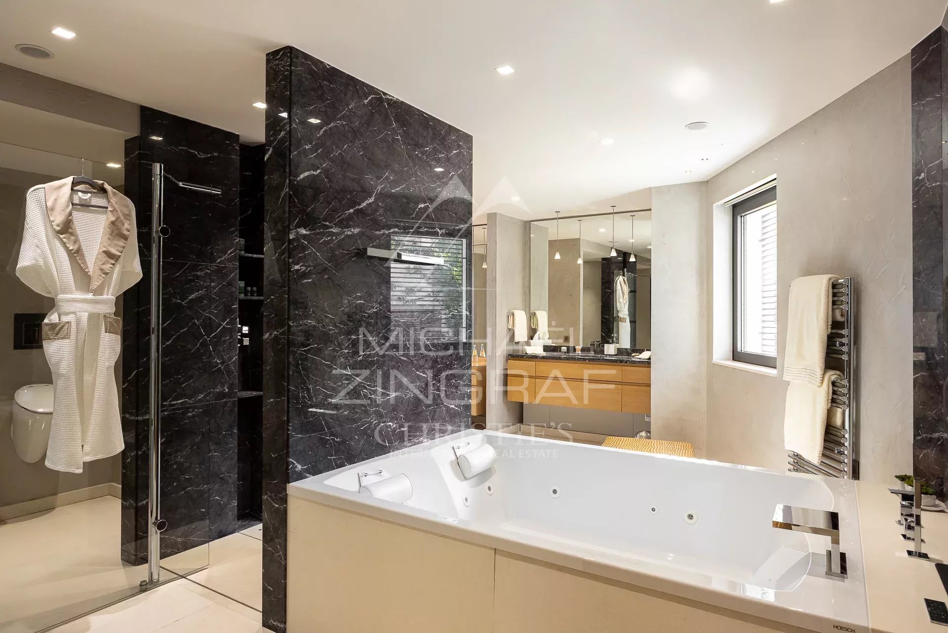 Located in one of the most exclusive areas of the French Riviera, this modern 1,200 m² villa, surrounded by 8,000 m² of landscaped gardens, offers breathtaking views of the Mediterranean. Designed for truly serene stays, it comes with full hotel service, including a butler, private chef, and dedicated staff, ensuring that every moment is synonymous with comfort and elegance.