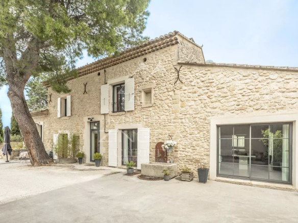 In the countryside, just minutes from the center of Robion, this magnificent 18th-century stone farmhouse captivates with its Provençal elegance and warm atmosphere. Completely and meticulously restored in 2010, it embraces a contemporary style while retaining its original charm.