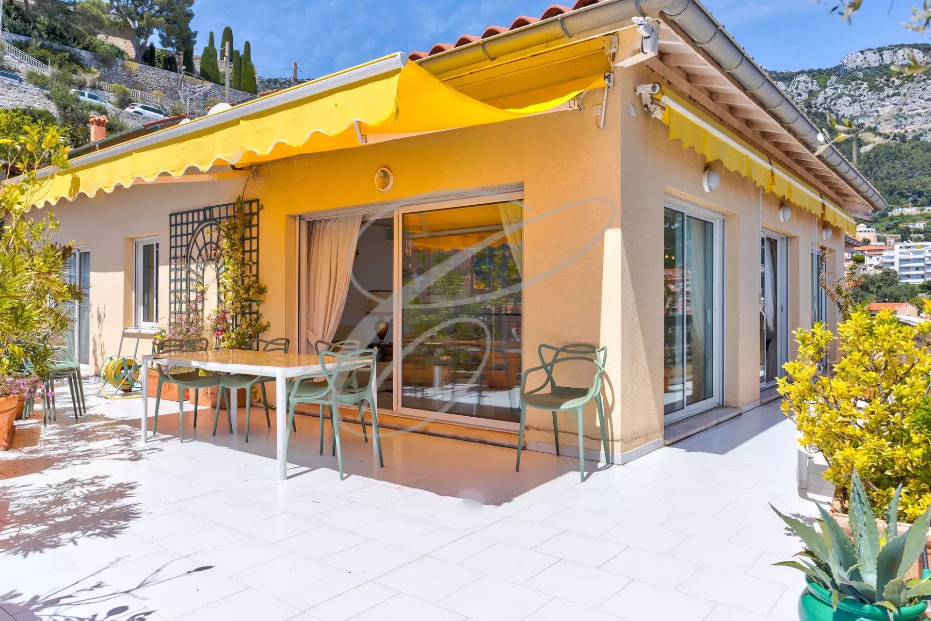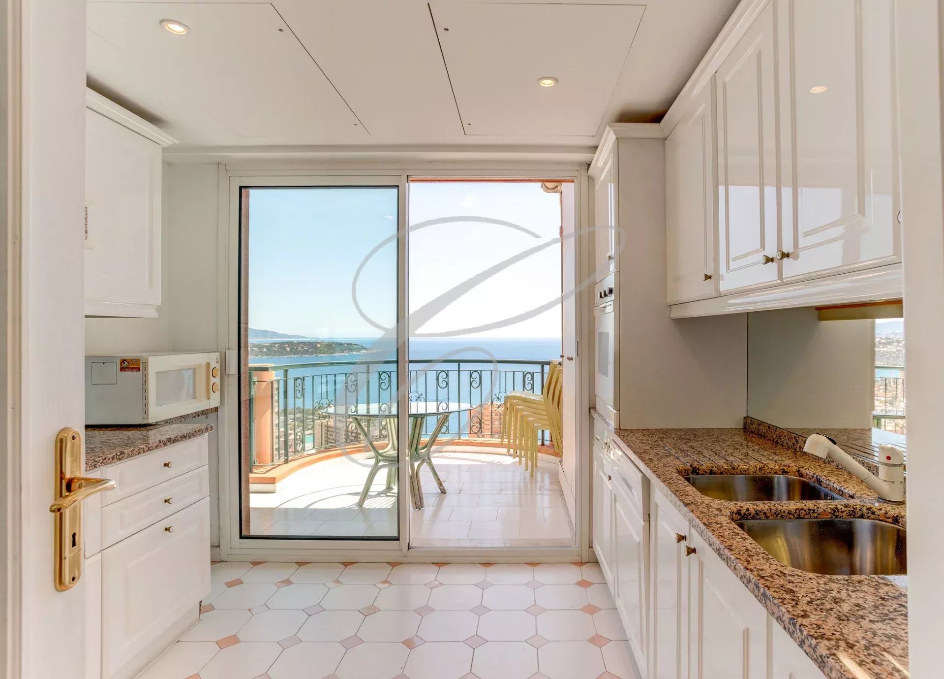 Just a stone's throw from Monaco, in a secure residence, a magnificent 4-room penthouse with beautiful terraces offering panoramic views of the sea and Monaco! This apartment comprises an entrance hall, a spacious living/dining room, a separate fully equipped kitchen, and 3 bedrooms with en-suite bathrooms. A garage, an underground parking space, and a cellar complete this exceptional property. Information on the risks to which this property is exposed is available on the Géorisques website: www.georisques.gouv.fr. CNPM Consumer Mediation Mediator