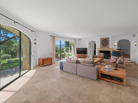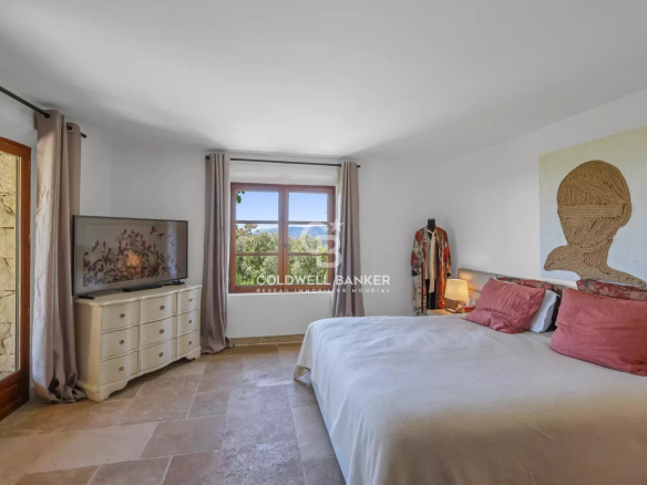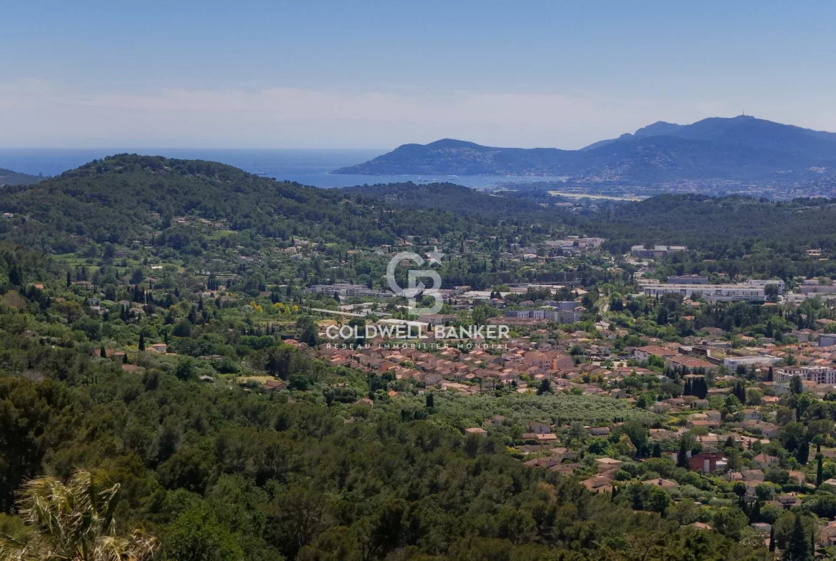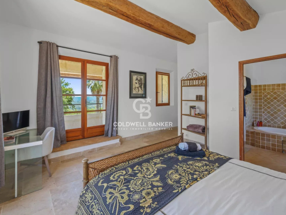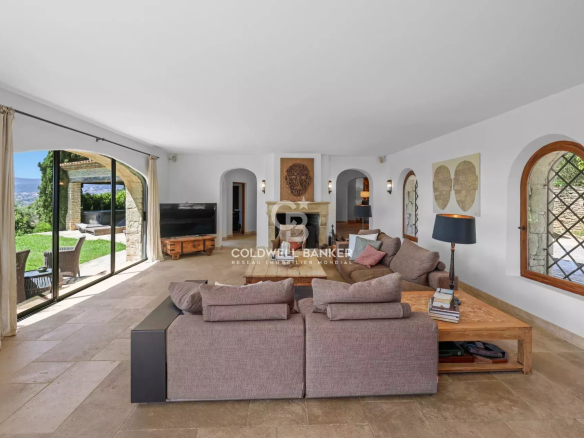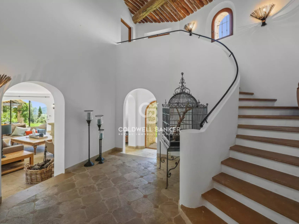 Nestled within a small, gated community, this superb Provençal villa offers breathtaking panoramic views stretching to the sea and the Esterel mountains.