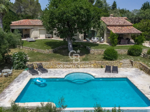 The approximately 5,000 m² plot, planted with olive trees, includes a 50 m² outbuilding in need of renovation, a beautiful swimming pool, and a tennis court. The Gordes stone facades lend the villa an authentic and refined charm.