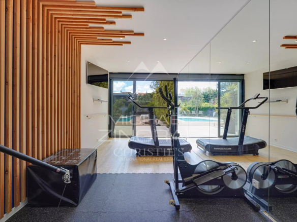 Outside, the landscaped garden is a true gem, with carefully structured paths, manicured flowerbeds, an immaculate lawn, a teak terrace, a separate gym and a 10 x 6 m heated salt-water swimming pool, secured by glass railings.