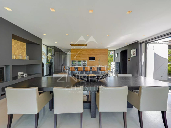 The house is distinguished by its numerous integrated storage spaces and its high-quality equipment: underfloor heating, air conditioning and ducted heating in all rooms, centralized home automation for the management of lighting, shutters, heating as well as a reinforced security system.