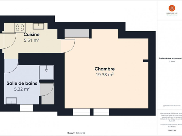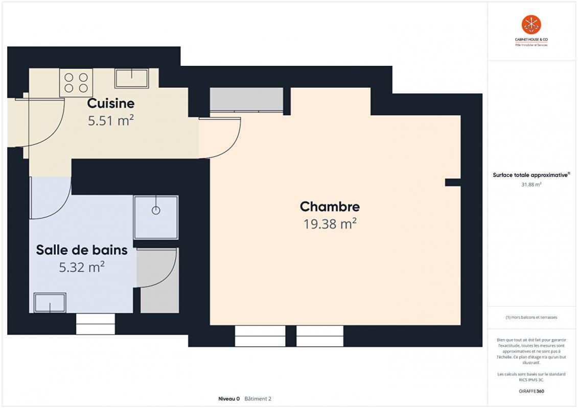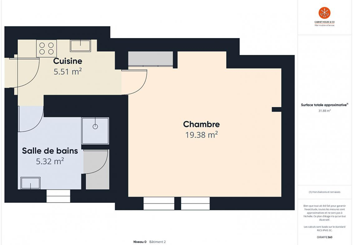 – Studio of approximately 30m2 consisting of a fully equipped and fitted kitchen, a living room and a shower room.