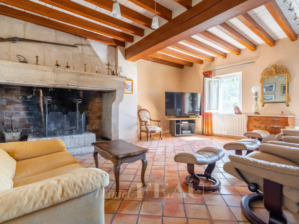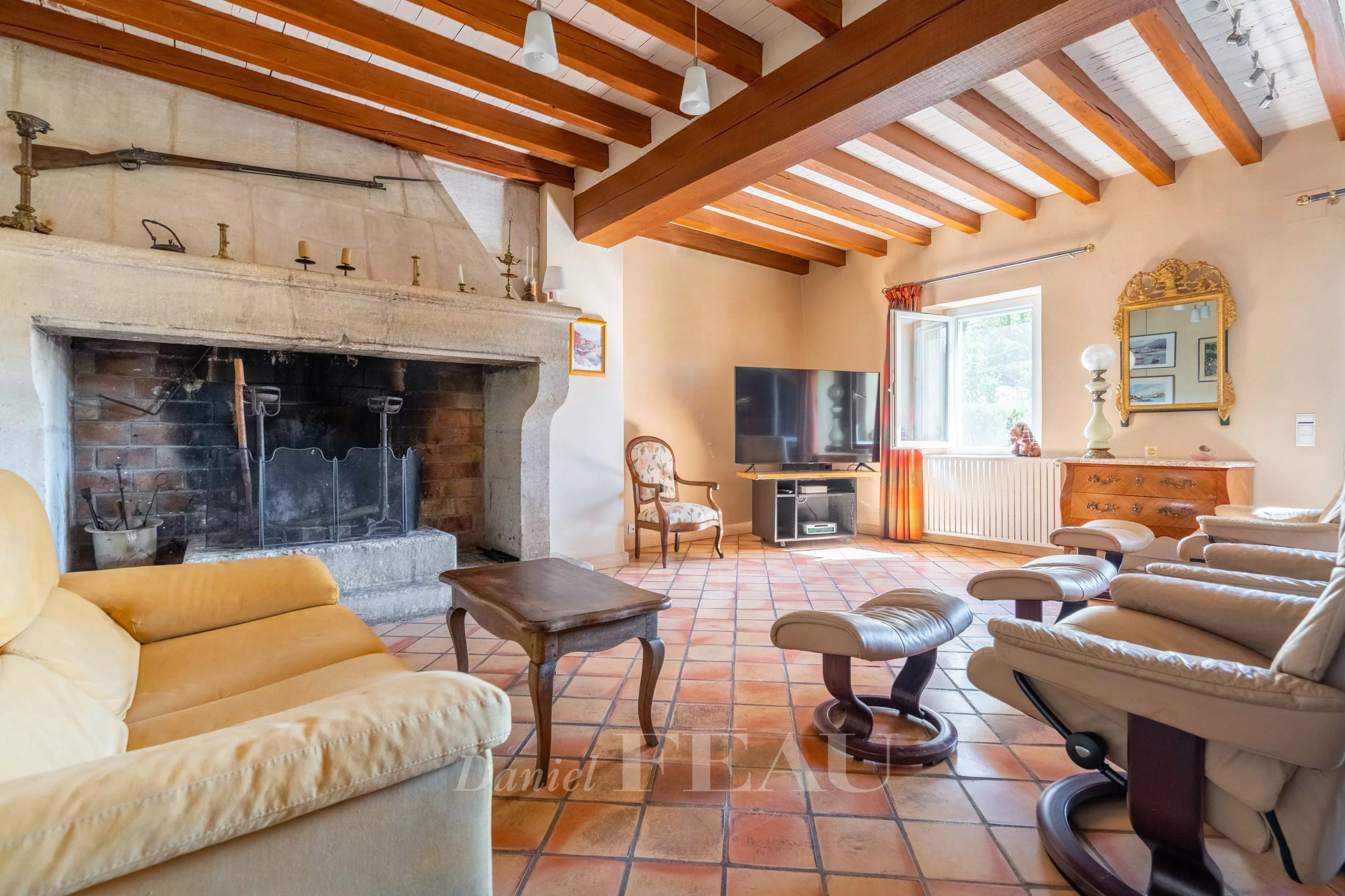 – On the ground floor: an entrance hall, a living room with a stone fireplace, an office, a large kitchen/dining room and a vaulted living/dining room.