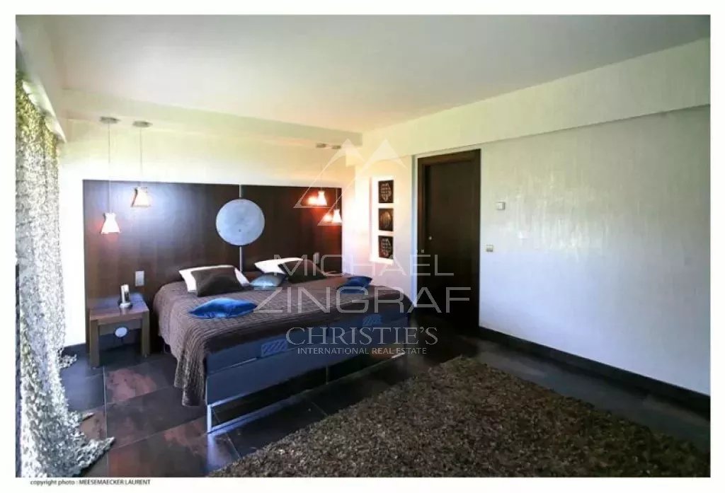 Located on a superb flat land of 4,300 m², it seduces by its 16 x 5 meter swimming pool which harmoniously connects the two villas, as well as by its elegant pool-house of 57 m², ideal for meals in all season. Each detail has been carefully thought out to offer absolute comfort: gym, spa, wine cellar with tasting lounge, floor heating, and much more.