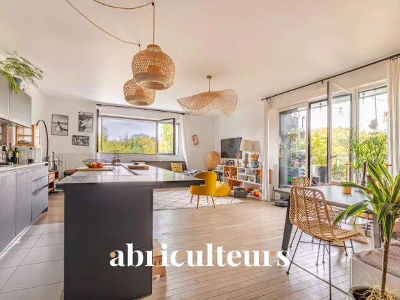 Abriculteurs invites you to discover this light-filled apartment overlooking the Île Saint-Germain park. Located in a modern and secure condominium with a caretaker, this 100 m² property offers a privileged living environment combining absolute tranquility and urban dynamism.