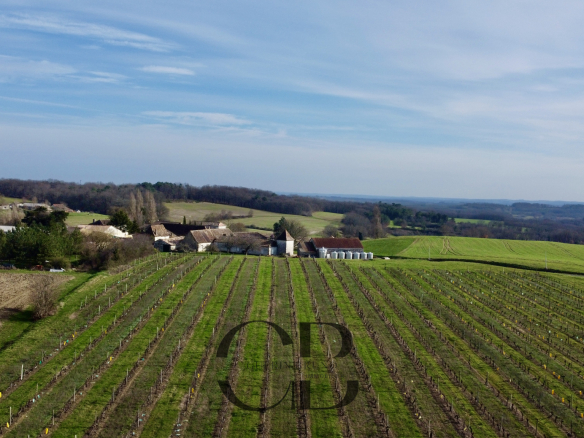 Situated in the hills of southern Dordogne, this vineyard is about 110 km from Bordeaux and 120 km from Toulouse, as well as 40 km from Périgueux, the departmental capital, and 60 km from Agen, the prune capital. Bergerac Airport, with flights to Brussels, London City,