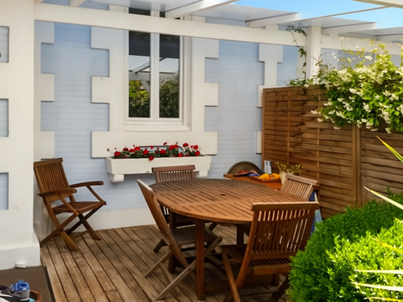 Just 100 meters from the beach, discover this charming, renovated, bright 100m² (approx.) Arcachon-style house in a prime location, close to shops and public transport. This lovely, well-maintained house offers two separate living spaces that can be combined to create a larger property for family or friends.