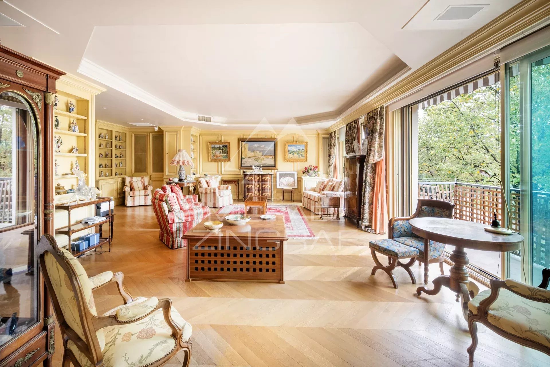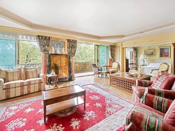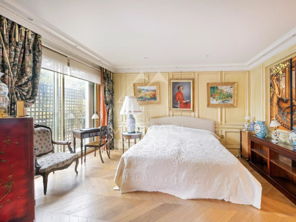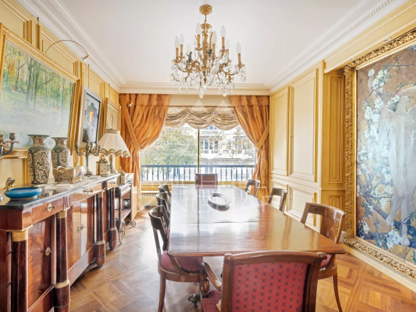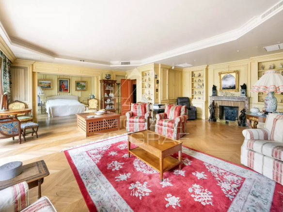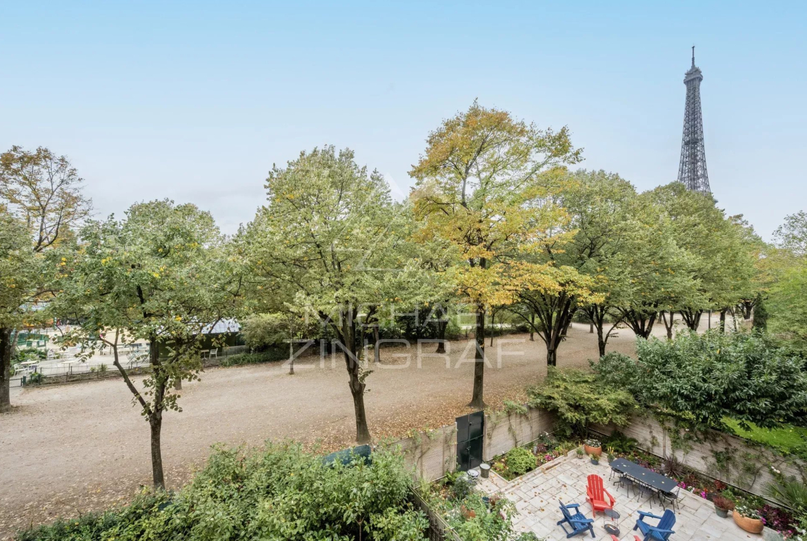 Offering exceptional views of the Eiffel Tower and the Champ-de-Mars, on the second floor with elevator of a prestigious cut-stone building, magnificent air-conditioned apartment of 191 m² rented furnished with an independent studio of 27m2 on the 1st floor.