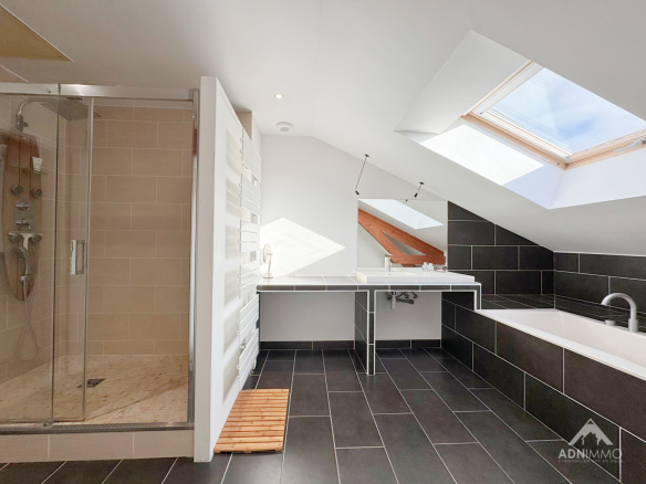 ADN Immo agency exclusively presents this magnificent 19th-century Gex-style barn in the commune of Péron. Completely renovated, it comprises a bright, open-plan living area of 120 sq m including a fully equipped kitchen, three spacious bedrooms, two of which are suites (with the possibility of accommodating four or five), a playroom, a mezzanine, an office space, two bathrooms, and three toilets. In addition, there is a lovely garden landscaped with a summer kitchen alongside a stream, a double terrace, and outdoor parking.