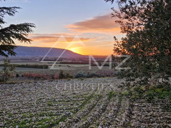 Just a few minutes from the center of Gordes, in the heart of a preserved natural environment, this former early 19th-century farmhouse stands in a dominant position on the heights of a hill, offering a superb panorama of the surrounding plain, the Luberon Mountains and the Vaucluse Mountains.