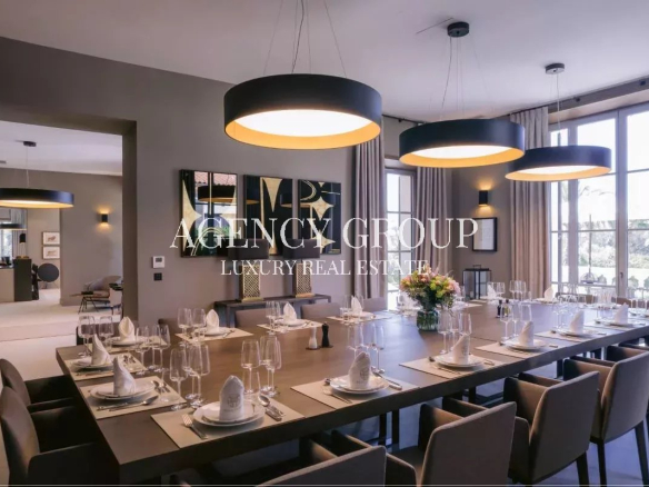 Outside, there are splendidly landscaped terraces, a large swimming pool, a jacuzzi, a pool house with a summer kitchen and a beautiful dining table.