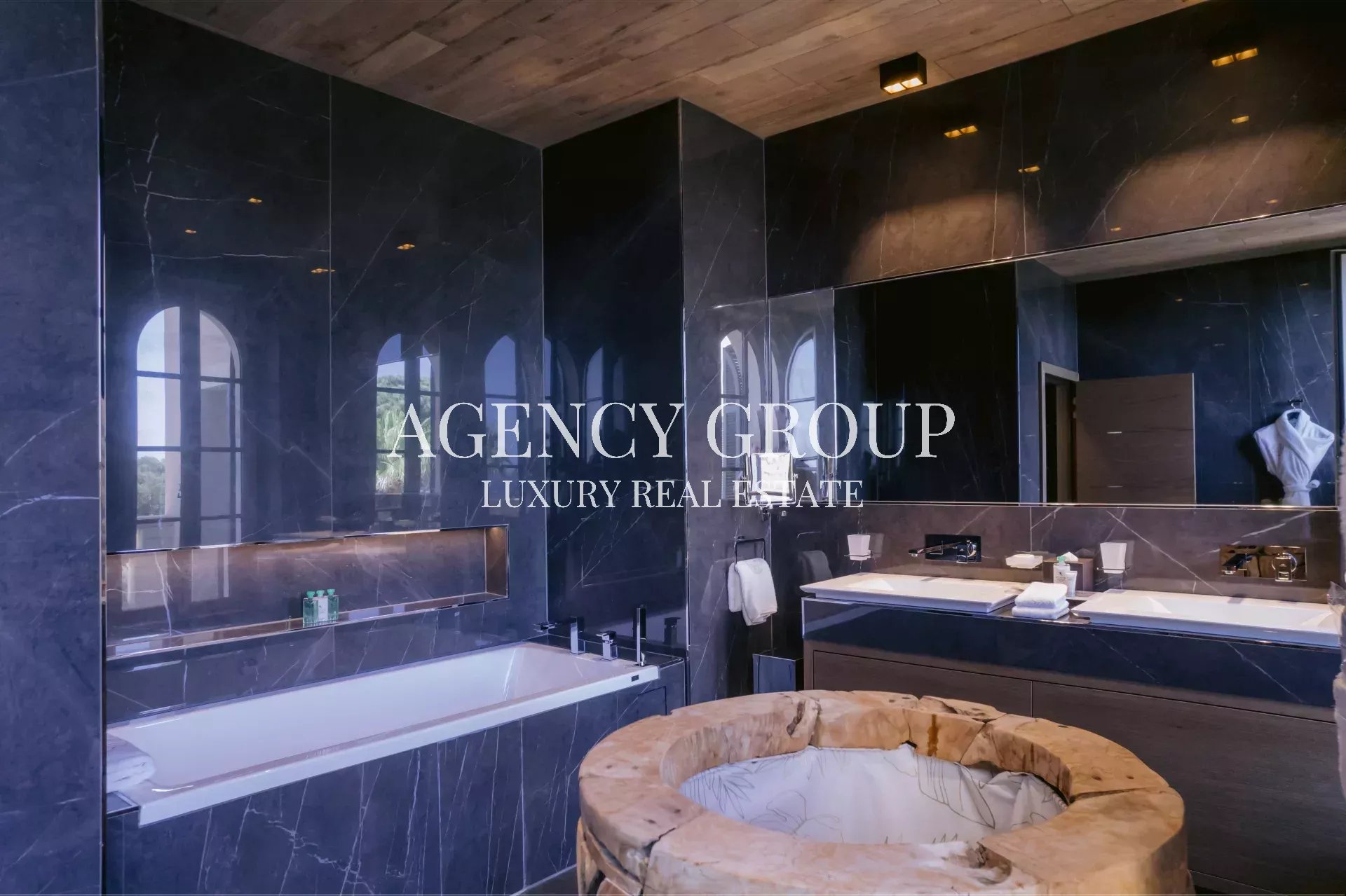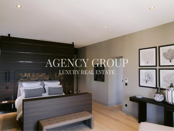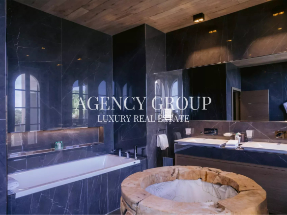 The villa's advantages: Daily cleaning, linen, concierge service, volumetric and perimeter alarm system, heated swimming pool, jacuzzi, gym, massage room, barbecue, parking for 15 cars, electric gate, TV, air conditioning, laundry, pétanque court, helipad.