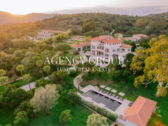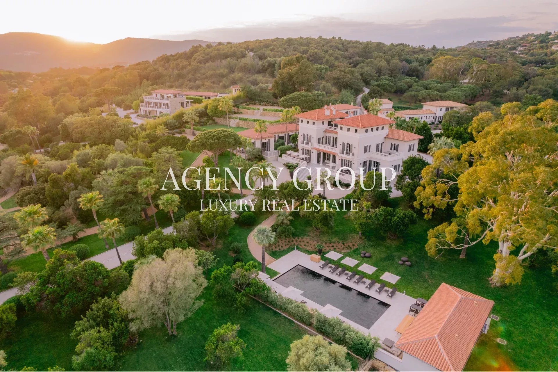 Located near the beach and a few minutes from the village of Saint-Tropez, this high-end property with a living area of 1000m2 boasts panoramic sea views and a magnificent wooded plot of 8000m2. It comprises a main residence and two secondary residences.
