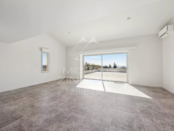 Discover this sumptuous apartment of approximately 141 m², nestled within a prestigious estate in a residential area, offering a commanding position and breathtaking sea views. This exceptional property is distinguished by its bright living room, complemented by a high-end, fully equipped open-plan kitchen. Large bay windows open onto a magnificent south-facing terrace, ideal for enjoying the sun and enchanting panoramas.