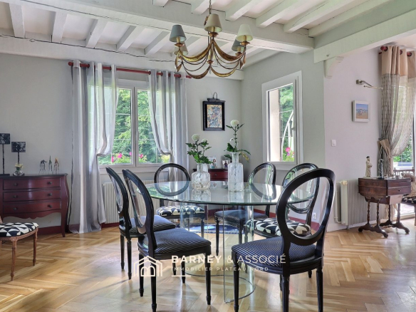 BARNEY & ASSOCIÉ offers for sale, in a quiet and desirable neighborhood, this beautiful 173 sq m property comprising: a spacious entrance hall with dressing area, separate WC, a 60 sq m triple living room with fireplace, and a large fitted kitchen. Upstairs, a landing leads to a master suite with bedroom, dressing room, and bathroom, as well as three further bedrooms and a shower room. A