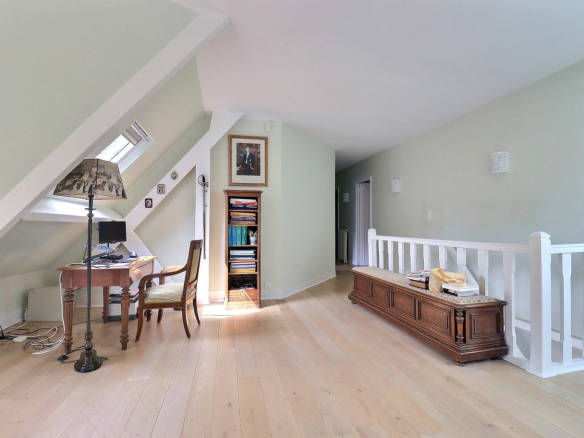 Upstairs, a central mezzanine office leads to four beautiful bedrooms, as well as a bathroom.
