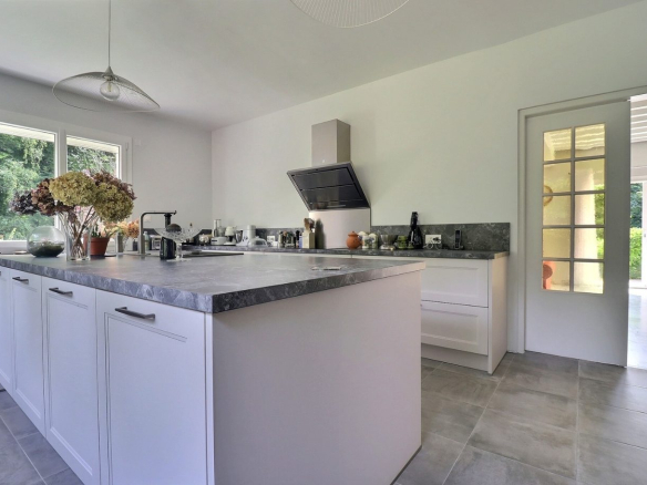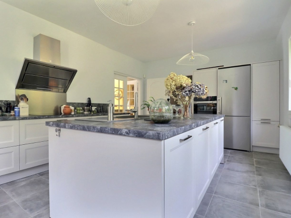 On the ground floor, a spacious entrance opens onto a bright, open-plan living area of 55 m², as well as a separate, fitted and fully equipped kitchen. A master suite on the same level, followed by a private bathroom and a separate WC, complete this floor.