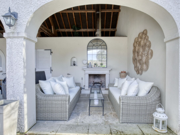 Outside, secluded from view, there is a large enclosed garage with space for several vehicles and access from the house, a paved courtyard, a large terrace, a laundry room, a workshop, a relaxation room, a beautiful 10 x 5 m outdoor swimming pool with a roller cover, a pool house and summer kitchen, a fully equipped gym, and a utility room.