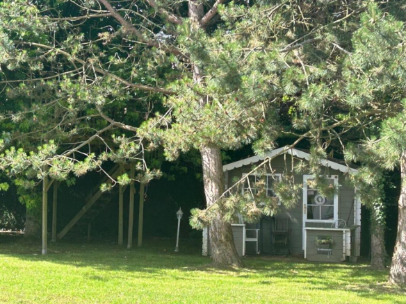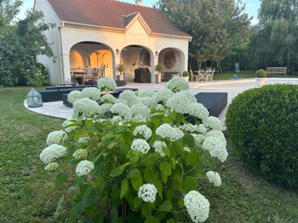 East-south-west facing. 75 m² garage. High-speed fiber optic internet? 3 fireplaces, including one exterior fireplace? Aluminum window frames with electric shutters? Heat pump, reversible air conditioning for reasonable bills? Large, flat garden with flowers and trees, enclosed by fencing and stone walls along the driveway (fruit trees, various tree species?). Wooden treehouse? Large Burgundy stone terrace? Video surveillance system?