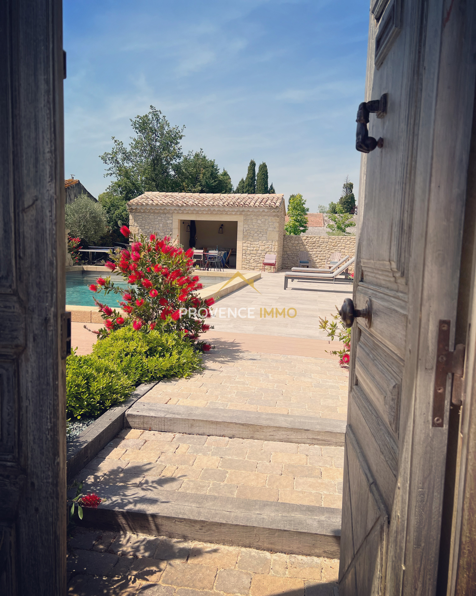Lucie Souteyrand is pleased to exclusively present a gem in the heart of the South of France: a high-end property with swimming pool and pool house, located in the authentic and peaceful village of Grans. This exceptional property, tastefully renovated in 2020, combines Provençal charm with modern comfort, and benefits from a privileged location just 30 minutes from the famous Baux-de-Provence, 30 minutes from Marseille Provence Airport, Aix-en-Provence and Avignon.