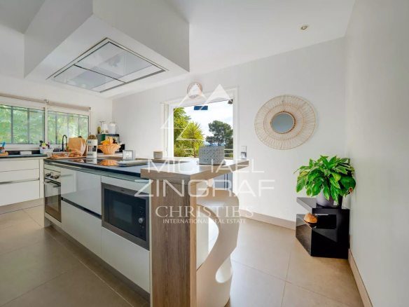 The fully equipped kitchen also benefits from direct access to a terrace overlooking the greenery and to the summer kitchen, perfect for entertaining and enjoying sunny days.