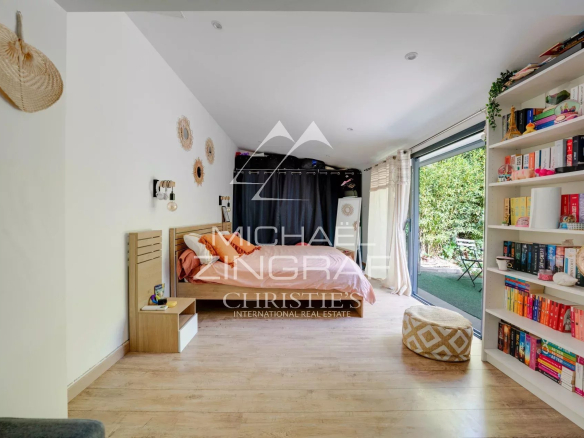 The sleeping area consists of two bedrooms on the main floor, sharing an elegant bathroom, as well as two additional bedrooms on the garden level, including a master suite with dressing room, bathroom, shower and toilet, opening directly onto the garden.