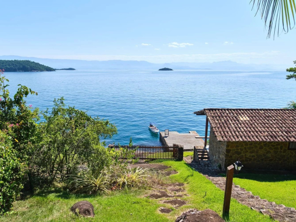Idyllic house by the water with a jetty in Paraty