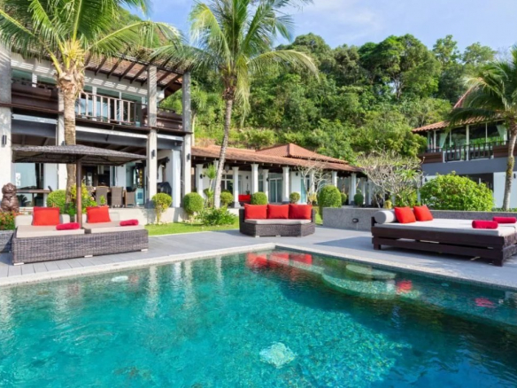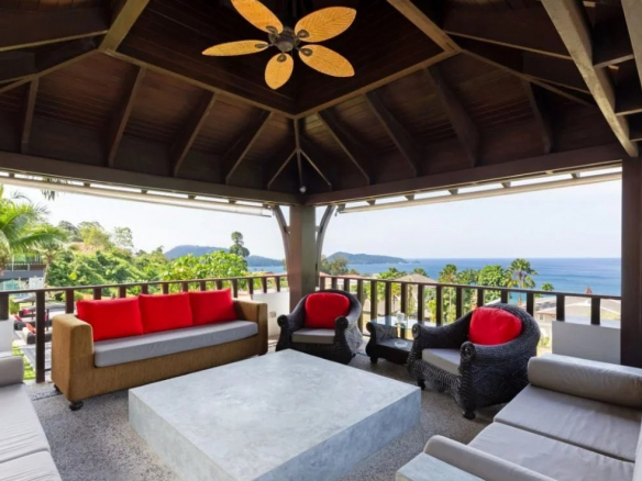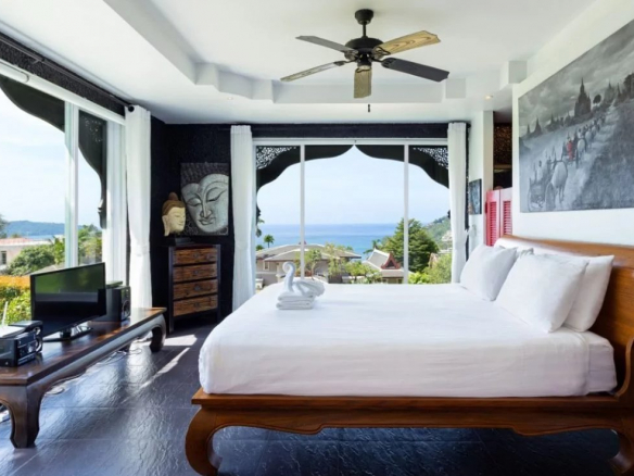 Impressive Thai-style Balinese 8-bedroom villa with sea views, nestled on a mountainside north of Patong, offering unobstructed views across the bay to the west coast and the horizon.