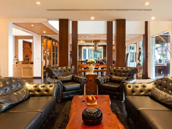 This fully furnished luxury property comprises 750 m² of interior living space in 7 interconnected buildings on 1.5 Rai (2,400 m²) of flat hillside land.