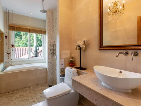 Just minutes from Patong town center, the villa is completely private, with sea views to the front and a wooded mountain retreat to the rear.