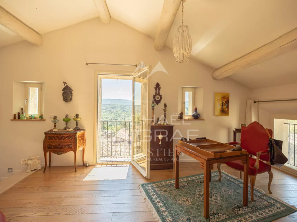 In the heart of the popular village of Goult, this superb individual stone house, carefully renovated in 2011, offers 225 m² of developed surface, including 165 m² living space spread over three levels. It has an exceptional location, with a breathtaking view of the village roofs and the Luberon hills.