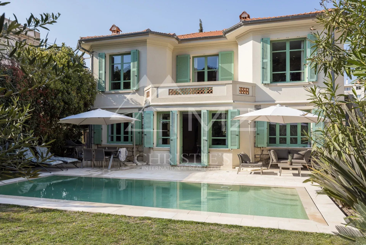 Beautifully renovated villa of approximately 200 m2 on a flat plot of 586 m2 with a swimming pool. Located in a quiet area and within walking distance of the beaches and the town centre of Juan les Pins.