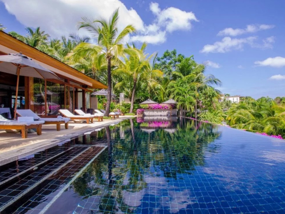 The stunning swimming pool, sun terrace, spacious dining room, and unique master bedroom all have to be experienced to be believed (as do the incredible sea views). The interior spaces, like all the bedrooms, benefit from the natural feel of rich hardwood floors, matching architraves and doors, silk-lined wall inserts, and high ceilings.
