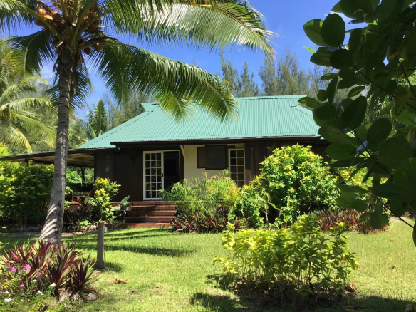 📋 MAIN FEATURES — Plot 1 (lagoon side): 10,000 m² • Plot 2 (sea side): 3,410 m² • Total land area: 13,410 m² • Main villa: 295 m² (3 bedrooms with terraces, 3 bathrooms, living room, kitchen, media room, pantry) • Caretaker's house: 105 m² (2 bedrooms, bathroom, living room, open-plan kitchen, terrace) • Guest house (under construction): 170 m² (1 bedroom, bathroom, living room, kitchen, laundry room, storage, terraces) • Fare pote'e (traditional Tahitian pavilion): 20 m² • Boat dock • Landscaped grounds: coconut palms, banana trees, papaya trees, lemon trees • Total rooms: 10 • Bora Bora Airport: 9 km • Raiatea Airport: 35 km • Huahine-Fare Airport: 77 km • Location: Bora Bora Leeward Islands • French Polynesia.